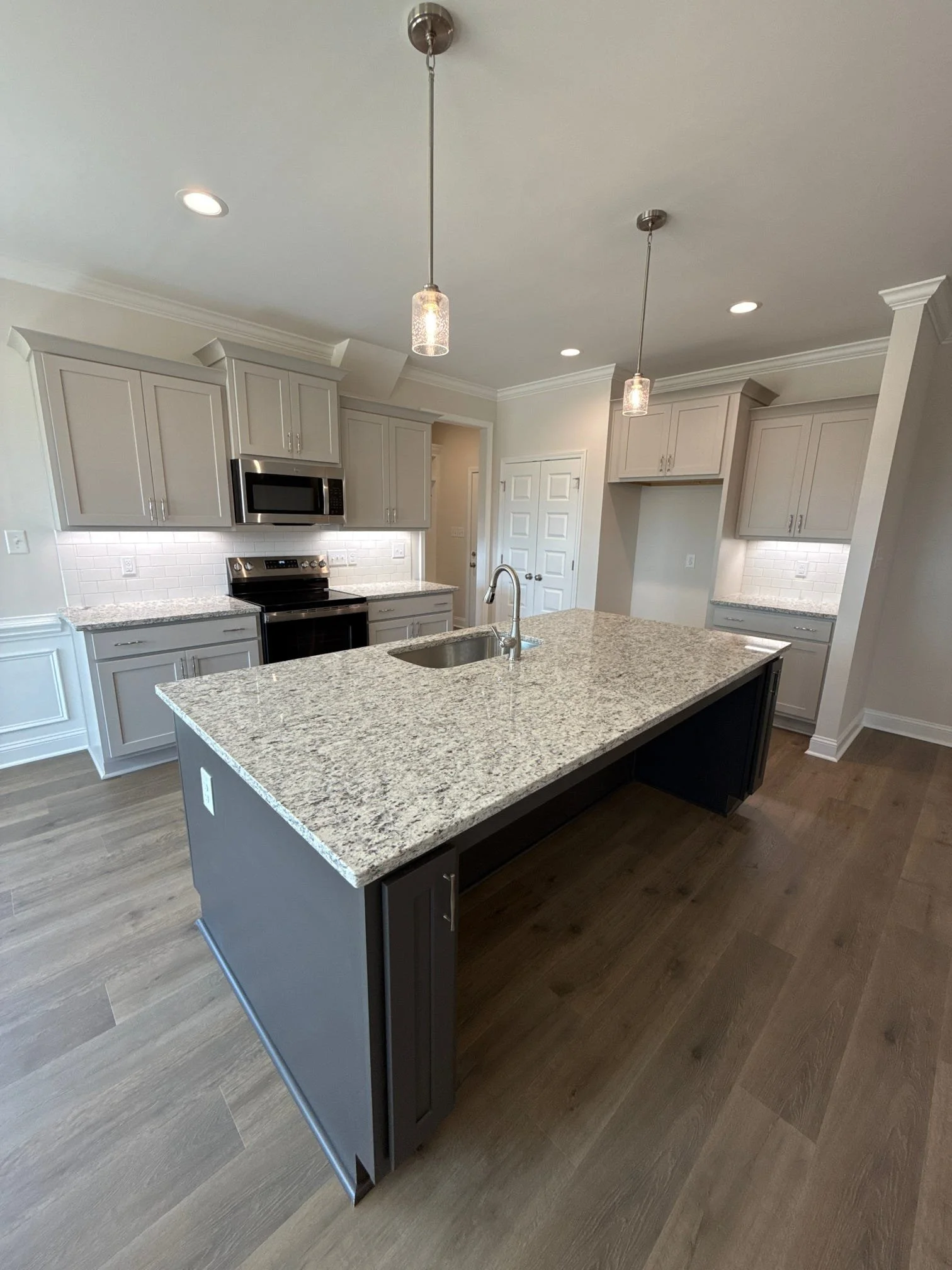 Cofield ranch plan offers both charm and convenience. The inviting covered front porch sets the stage for relaxation, while the screened back deck is perfect for enjoying the outdoors. Inside, the open-concept kitchen boasts painted cabinetry, granite countertops, a tile backsplash, and stainless steel appliances, offering plenty of space for multiple cooks. Custom closets throughout, tiled bathrooms and luxury plank flooring on the main level are just a few of TLE Homes' special touches. Walk-up bonus room features a third full bath on the second level, along with a huge walk-in storage area.